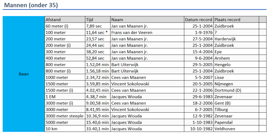 Clubrecords senioren: Mannen (onder 35)