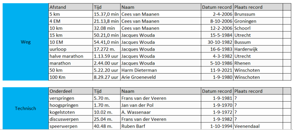 Clubrecords Vrouwen (senioren)